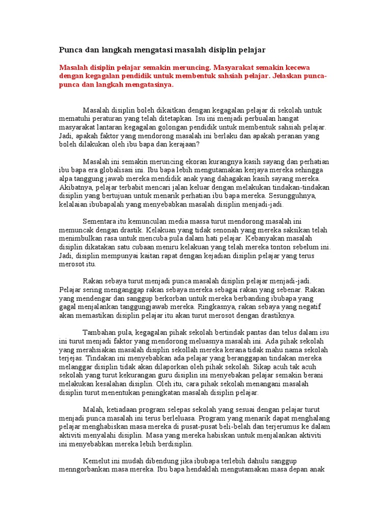 Punca Dan Langkah Mengatasi Masalah Disiplin Pelajar Pdf
